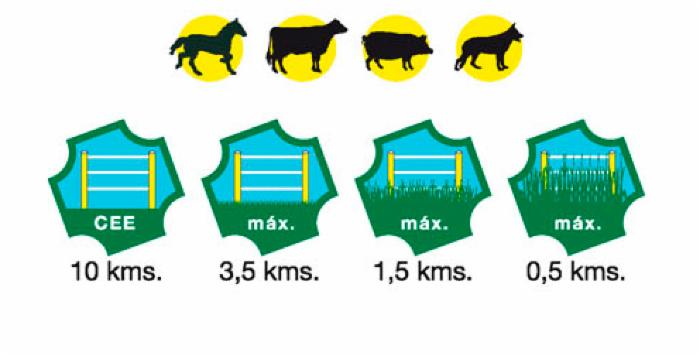 Apparecchio a batteria adatto per l'impiego in piccoli pascoli con lunghezza massima del recinto senza vegetazione 3,5 km. Lunghezza massima con poca vegetazione 1,5 km, con molta vegetazione 0,5 km.