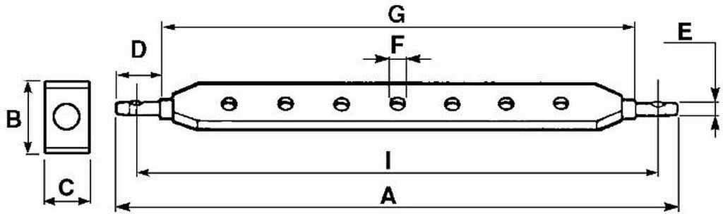 Barra di traino per l'attacco di attrezzi, categoria II. Sezione del piatto 80x40 mm. Barra di lunghezza 970 mm composta da 7 fori.