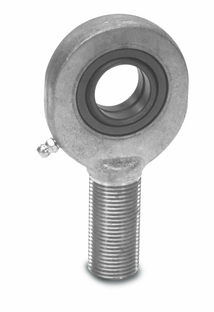Terminale a snodo maschio Ø 25 mm, ISO 12240-4, serie E, rilubrificabili, accoppiamento acciaio su acciaio.