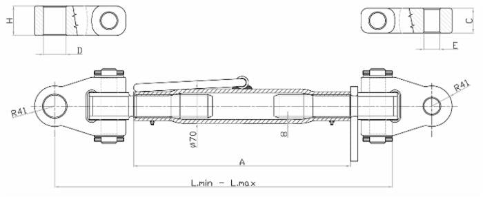 Terzo punto cat. III M48x3 con attacchi snodati lunghezza 765-975mm