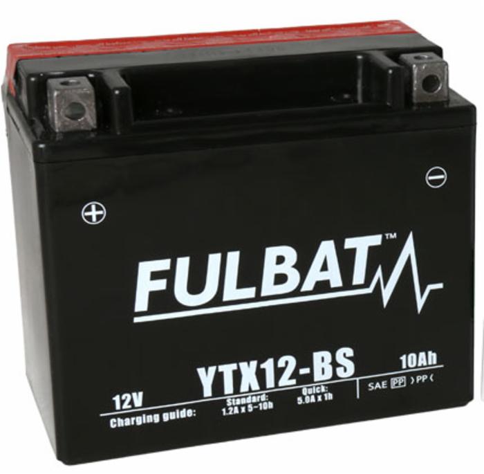 La batteria Fulbat per trattorini tagliaerba da 12V ha una capacità nominale di 10 Ah e un avviamento di 180 Ah. Ha polarità positiva e negativa. Viene fornita con un flacone di acido e non richiede manutenzione.