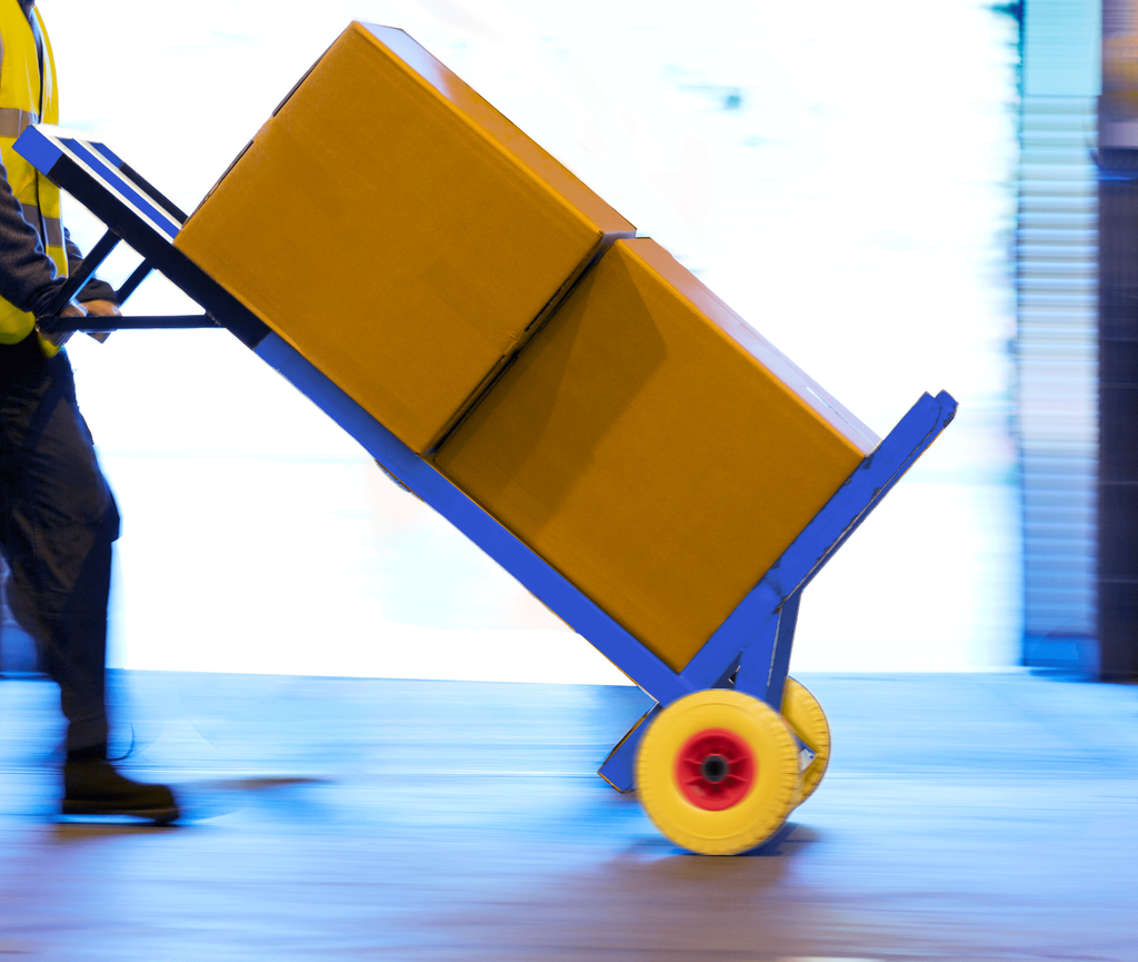Ruota di colore giallo progettata per l’utilizzo su carrelli.