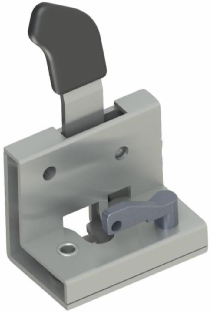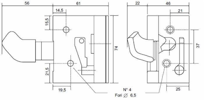 Serratura universale in acciaio zincato e pomello in gomma termoplastica, lato sinistro.