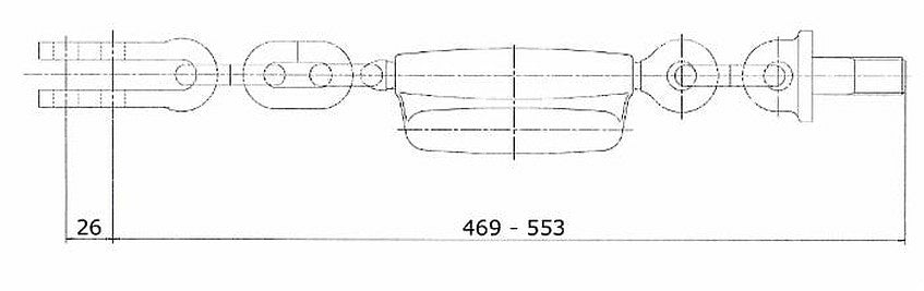 Catena imbrigliamento 1+2 maglie per attacchi a tre punti, adattabile a Fiat 5179842. Interasse 469 mm filetto M16X2 mm.