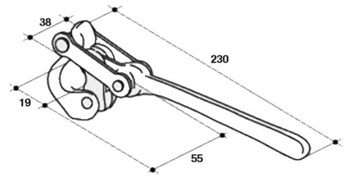 Chiusura di tipologia "Marotta" in versione leggera senza perno. È un dispositivo di bloccaggio versatile per rimorchi e carribotte.