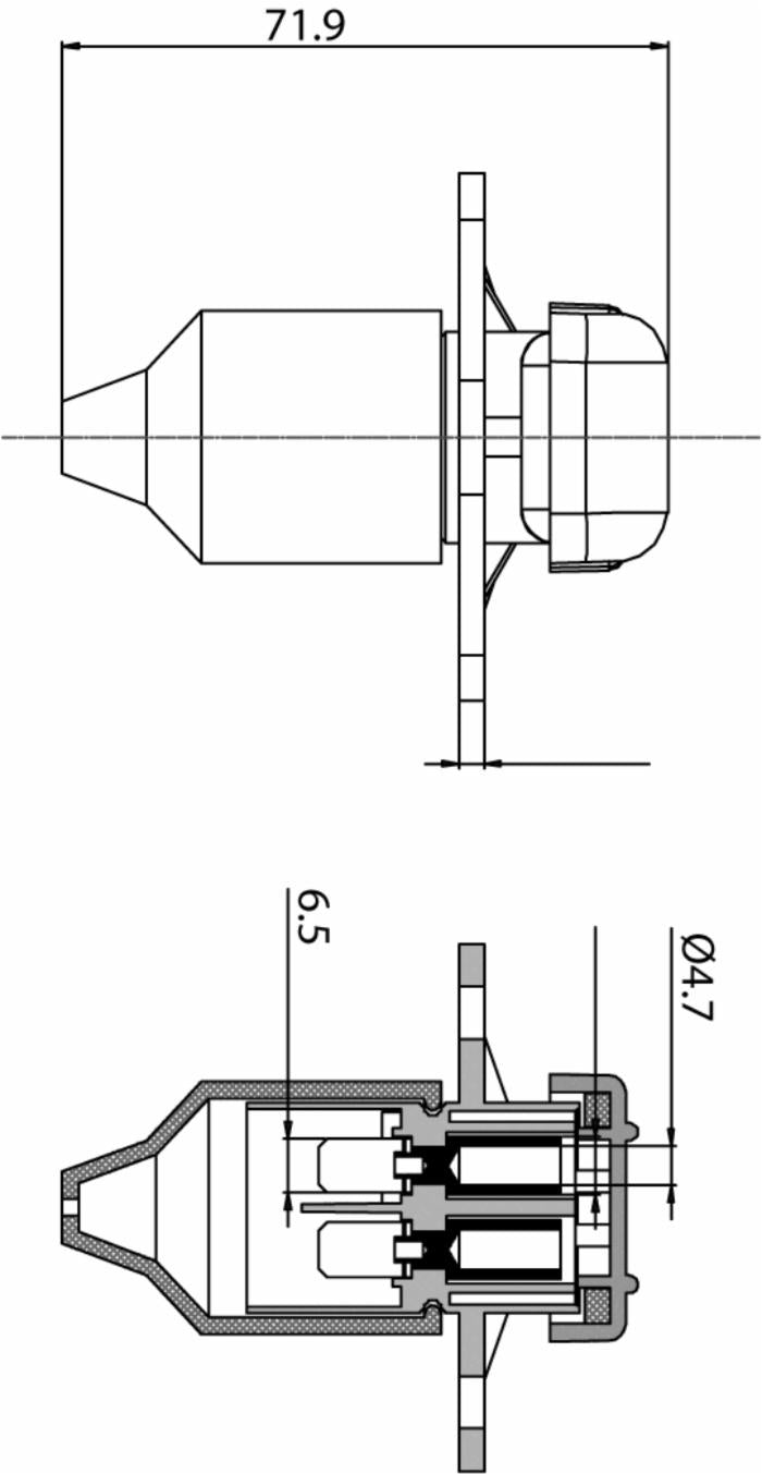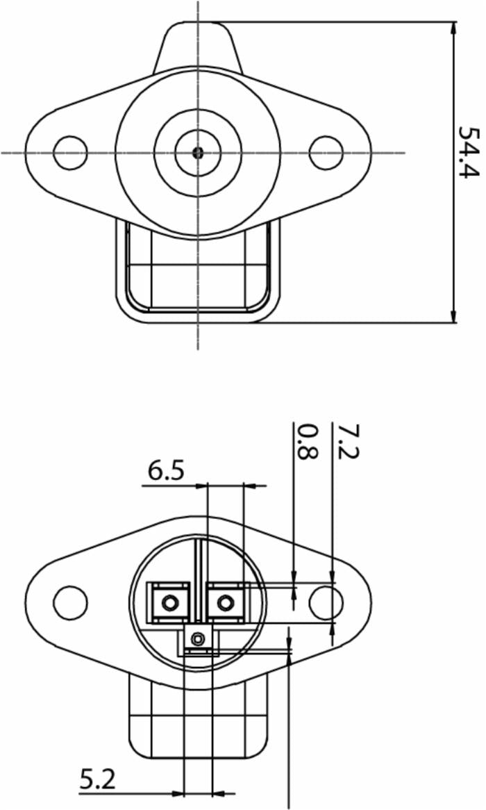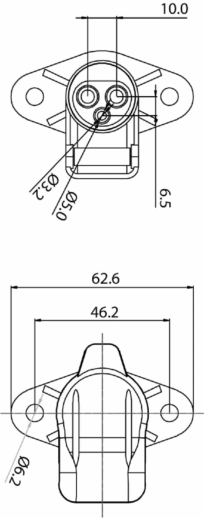 Presa 3 poli in plastica DIN 9680 con 2 fori di fissaggio e 3 attacchi faston