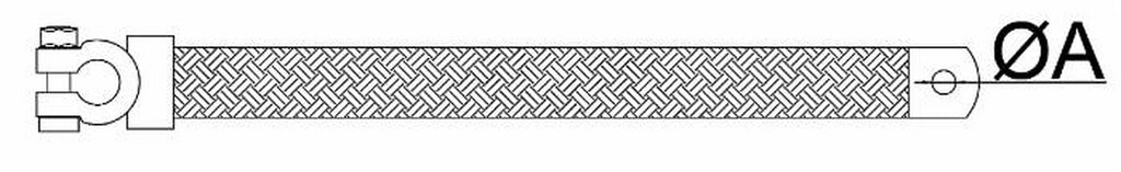 Treccia di massa con morsetto batteria polarità negativa sezione 25mm² lunghezza 400mm occhiello ø 10,5mm