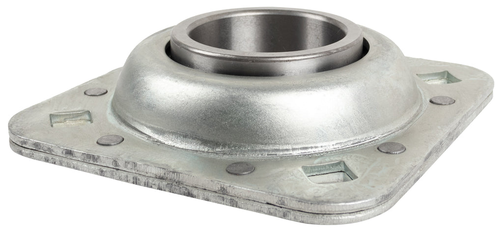 Supporto cuscinetto per frangizolle assemblato e rivettato con interasse fori 98 mm e cuscinetto diametro interno 55 mm. Il foro ha una profondità di 58,15 mm.