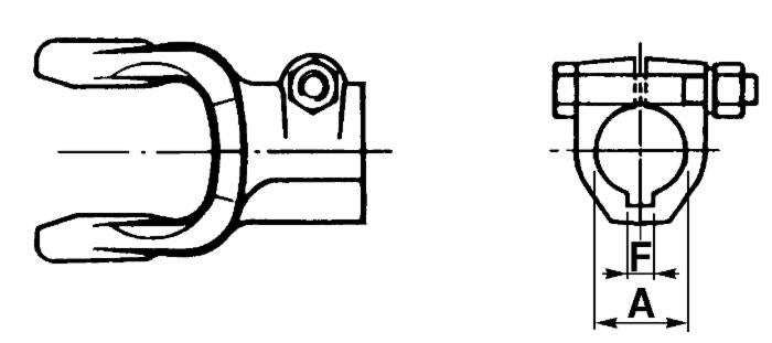 Forcella categoria 1 Ø 25, chiavetta 8, con bullone non interferente, 22x54.