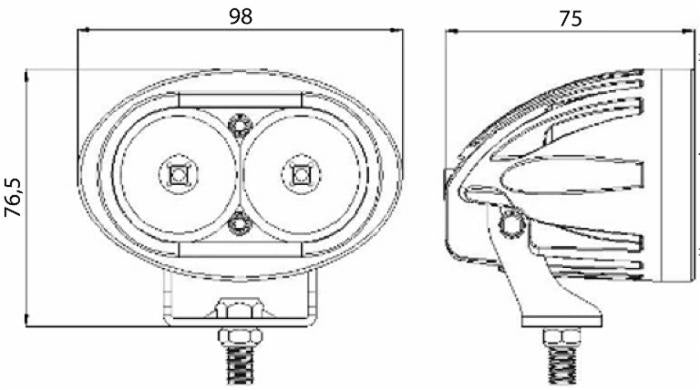 Questo modello, ovale dalle dimensioni di 98x75x76,5 mm, proietta in uscita un flusso di luce blu a lungo raggio “Spot”.