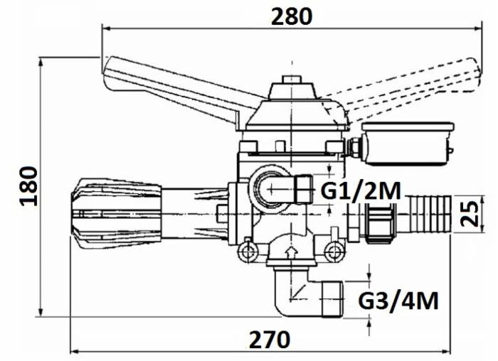 Comando con regolatore in alluminio M170 - portata 150 l/min