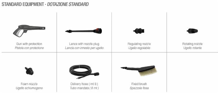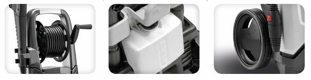 L’idropulitrice ad acqua fredda RS 1300 EXTRA della linea Mercury ha una maniglia ergonomica dove è possibile inserire comodamente sia la pistola che la lancia. Le due pratiche ruote posteriori consentono di spostarla facilmente e l’avvolgitubo posto nella parte superiore permette di tenere maggiormente in ordine l’area di lavoro. Il motore elettrico universale con protezione termica e la pompa assiale a tre pistoni con testata in alluminio la rendono altamente performante. Il raccordo per il collegamento alla rete idrica è posto frontalmente e il serbatoio destinato a contenere il detergente è removibile in modo semplice e automatico. In dotazione nella confezione: pistola con protezione, lancia con innesto per ugello, ugello regolabile, ugello rotante, ugello schiumogeno, tubo mandata (8 mt), spazzola fissa, filtro ingresso acqua in plastica. Perfetta per la pulizia in ambito domestico è inoltre eccezionale per il lavaggio di biciclette, moto, scooters, automobili, per la manutenzione ordinaria anche di piccole imbarcazioni dai residui di sale, alghe, sabbia e sporco in genere, oltre che di piscine, cortili, viali, scale ed arredi per esterni, cancelli, finestre, facciate, piastrelle in ceramica.