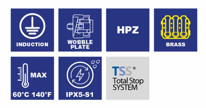 Produce una pressione massima di 160 Bar, con potenza 3,1 kW e una portata di 540 L/h. Il motore elettrico monofase a induzione può lavorare ininterrottamente per ore senza pause.
