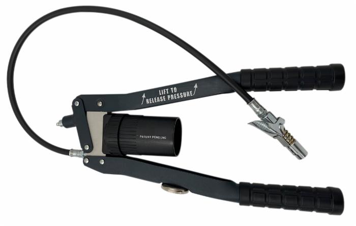 Dotata di tubo ad alta pressione da 700 mm con filetto M10x1 e testina , testina di sfiato e robuste leve con manici ergonomici.