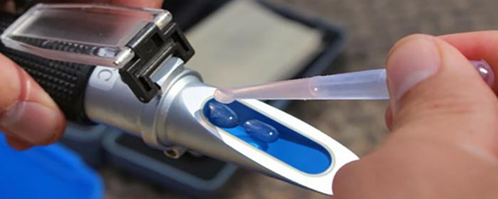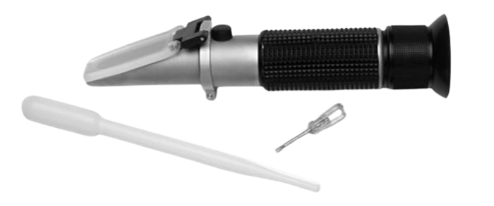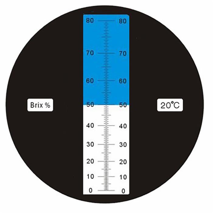 Il rifrattometro ottico viene utilizzato per identificare la concentrazione del grado zuccherino presente dentro il frutto. È dotato di una scala 58-90% Brix.