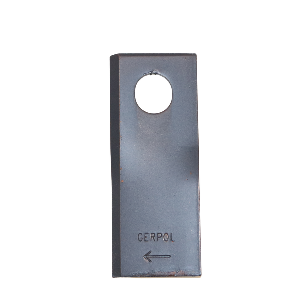 Il coltello piegato destro per falciatrice rotativa, con le sue dimensioni di 127x48 mm e un foro dal diametro di 20,5x23 mm, si adatta perfettamente alle esigenze in modo preciso.