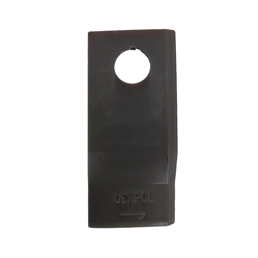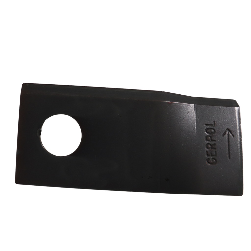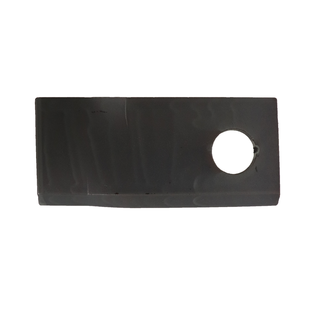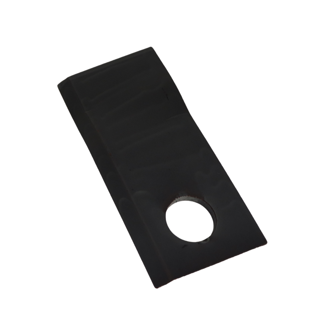 Coltello per falciatrice rotativa piegato sinistro, 106x48x4 mm, con foro diametro 19 mm. Adattabile al riferimento originale Fella 122329.