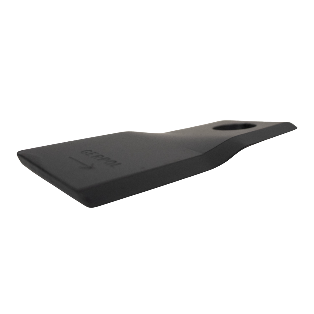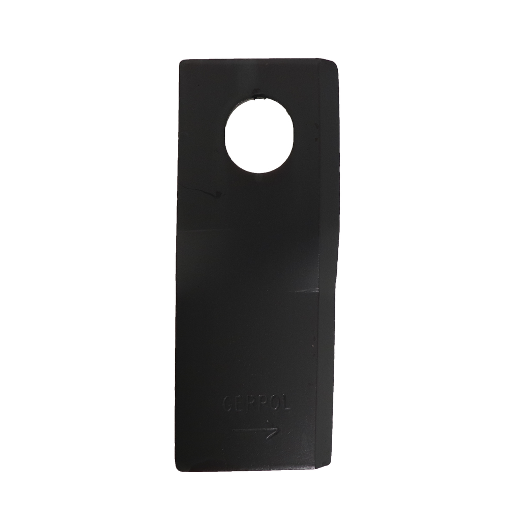 Coltello per falciatrice rotativa piegato sinistro, 127x48x4,3 mm, foro 20,5x23 mm. Adattabile al riferimento originale Taarup 56110900.