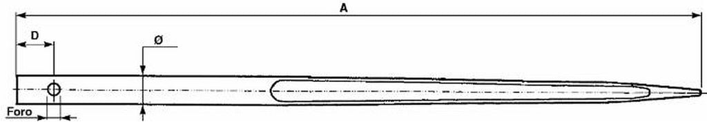 Punta forata per caricamento frontale ø 44mm lunghezza 1400mm