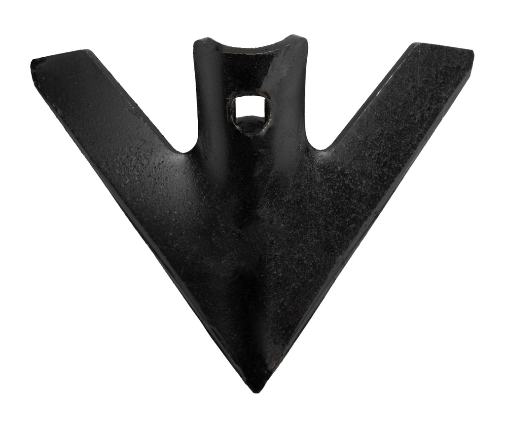 Questa vomerina triangolare per vibrocoltivatore è progettata appositamente per molle flex di dimensioni 32x10 mm e 32x12 mm fissandola con un bullone a testa ovale M10.