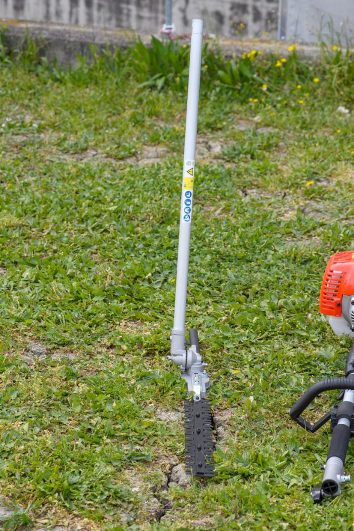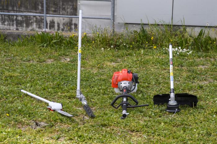 È dotato di 4 accessori interscambiabili: decespugliatore con testina batti e vai, disco a 3 denti, tosasiepi e potatore con barra da 25 cm.