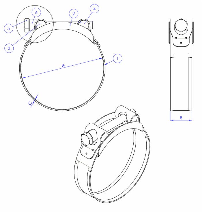 Collare a bullone in acciao inox misura 104-112mm, banda 24mm, garantisce una perfetta tenuta e qualità di serraggio per le applicazioni più gravose, anche con alte pressioni.