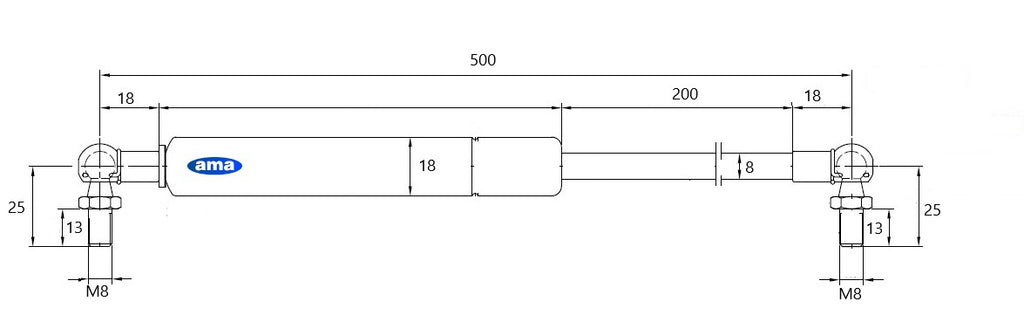 Molla a gas estensione max 500mm 300 N adattabile al riferimento originale Deutz-Fahr 04373761