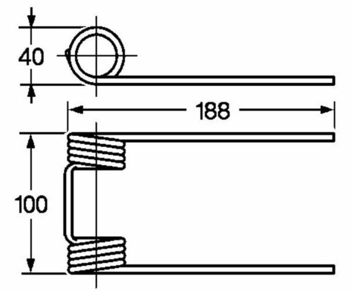 Dente pick-up per pressa/rotopressa larghezza 100 mm, lunghezza 188 mm, adattabile alla produzione Gallignani 8876210, con filo diametro 5 mm.