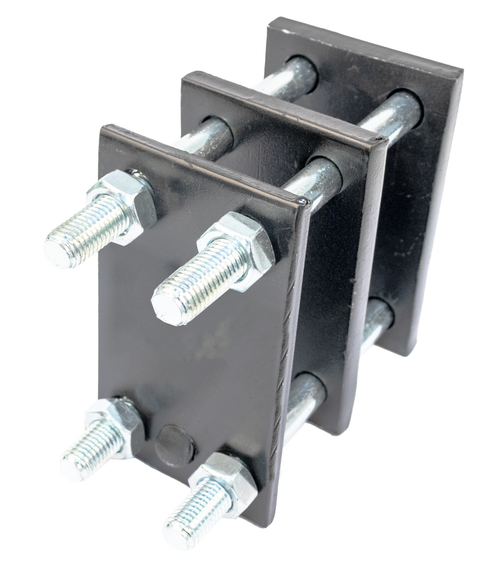 Staffa completa per fissaggio molla quadra 30x30 e trave da 80x80 mm.