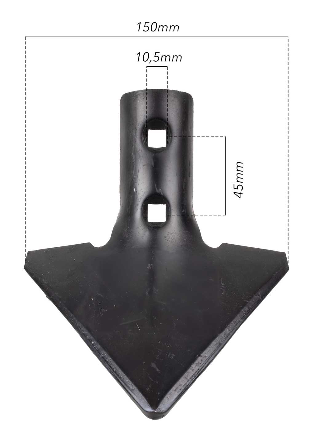Vomere a lancia piatto 150x6 interasse fori mm 45, per molla flex 45x12 e 60x12 a due fori.