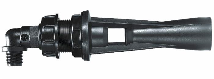 L'attacco filettato è G 1/2" con raccordo curvo a 90° lo rende idoneo al funzionamento con alte pressioni. Il corpo dell'agitatore è realizzato in polipropilene, mentre l'ugello è in ceramica, garantendo durabilità e resistenza.