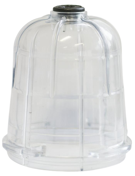 Coppa in policarbonato da agganciare con avvitamento, Ø interno 123 mm, Ø esterno 142 mm, altezza 165 mm. Applicabile ai vecchi modelli.