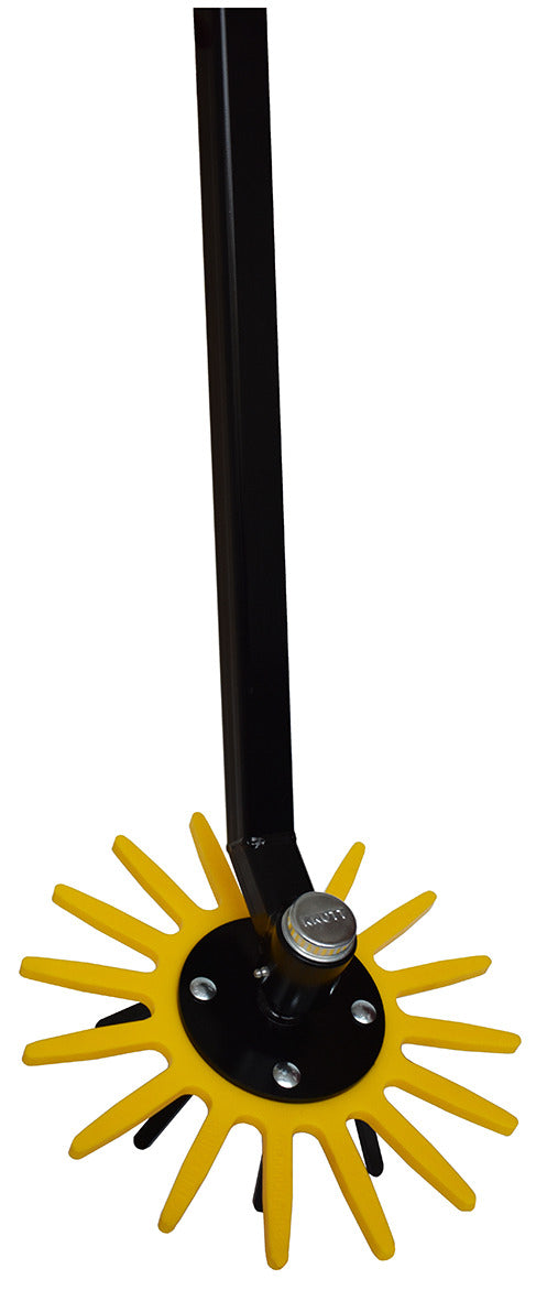 Elemento per sarchiatrice a dita sinistra Kult, modello giallo flessibilità media con diametro 370 mm. Dotato di supporto 40x40 mm, per distanza tra file superiore a 40 cm.