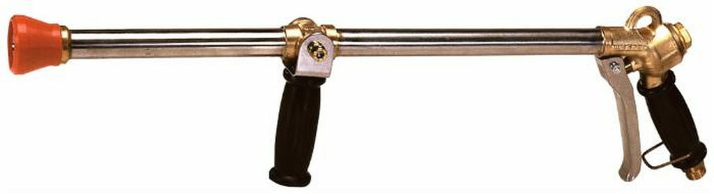 Lancia lunga gittata, lunghezza 700 mm, fornita con protezione, ugello cono M15x1 lunga gittata, foro Ø 4,5, ttacco filettato 1/2". Caratteristiche: Foro massimo ugello Ø 5,5 mm , gittata massima cono (ugello foro Ø 4,5 mm, 60 bar) mt.9,5, gittata massima spillo (ugello foro Ø 4,5 mm, 60 bar) mt.19,5. Può montare il raccordo girevole 1/2"-1/2". Pressoine 60 bar art.11121.