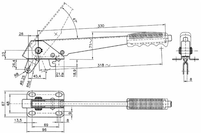 Leva freno a mano adattabile Fiat con cremagliera fissa - rapporto leva 1x5,67