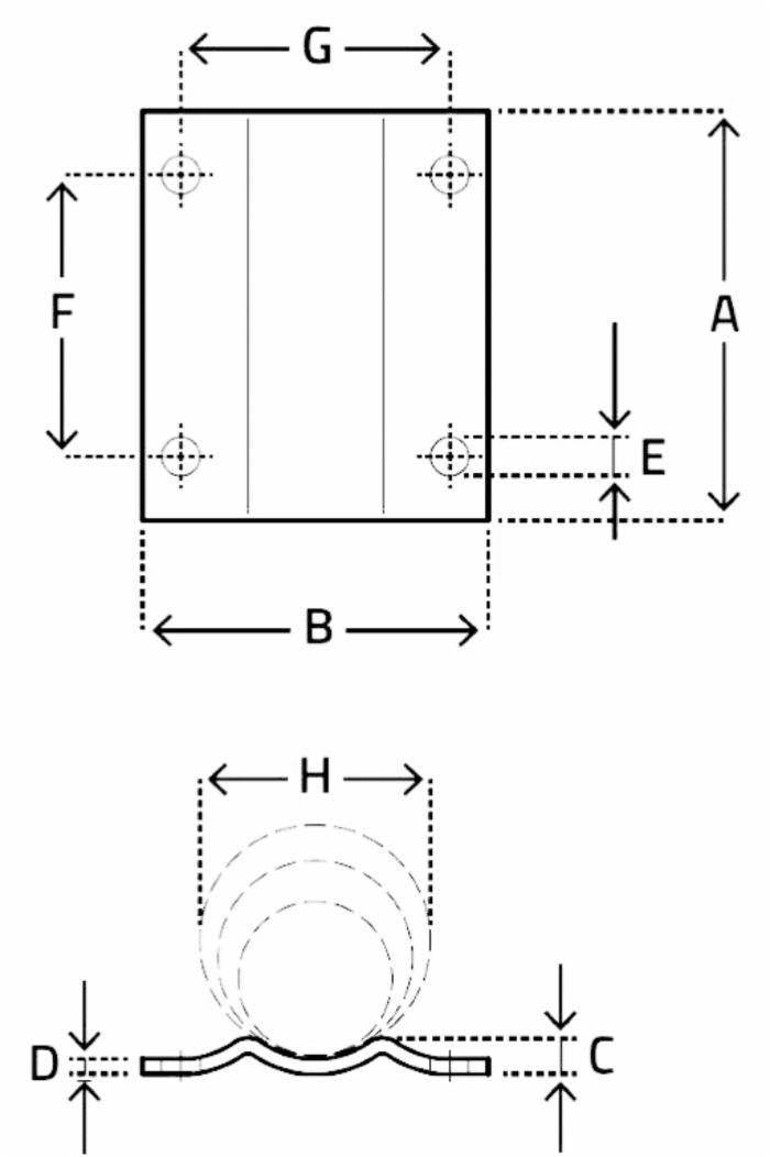 Piastra di fissaggio per ruote d'appoggio modello F1. Larghezza 135 mm, altezza 160 mm.