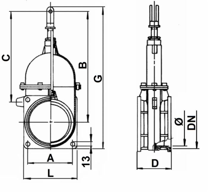 Saracinesca a stantuffo a doppia flangia diametro 6", 143mm.