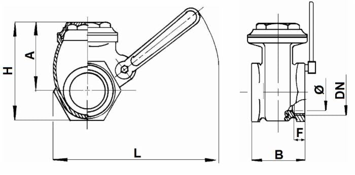 Saracinesca a leva diametro diametro93, Lunghezza totale L=395mm, pressione nominale 16bar.