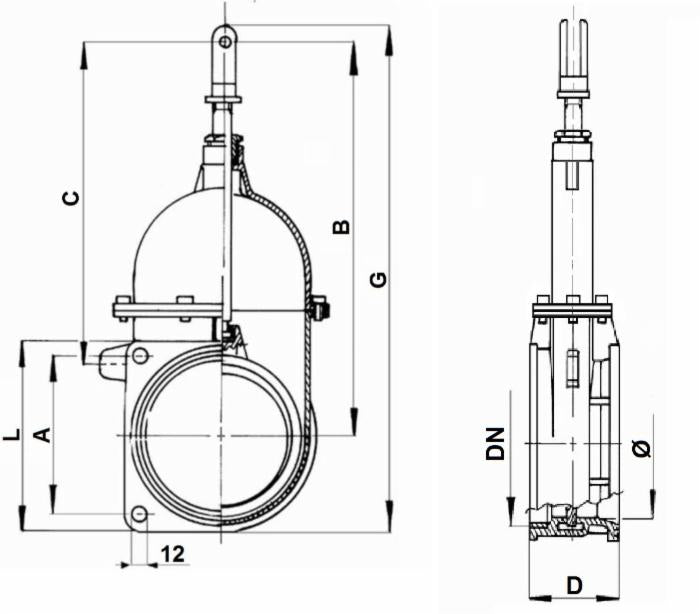 Saracinesca a stantuffo ad una ghiera e una flangia diametro 5", 120mm