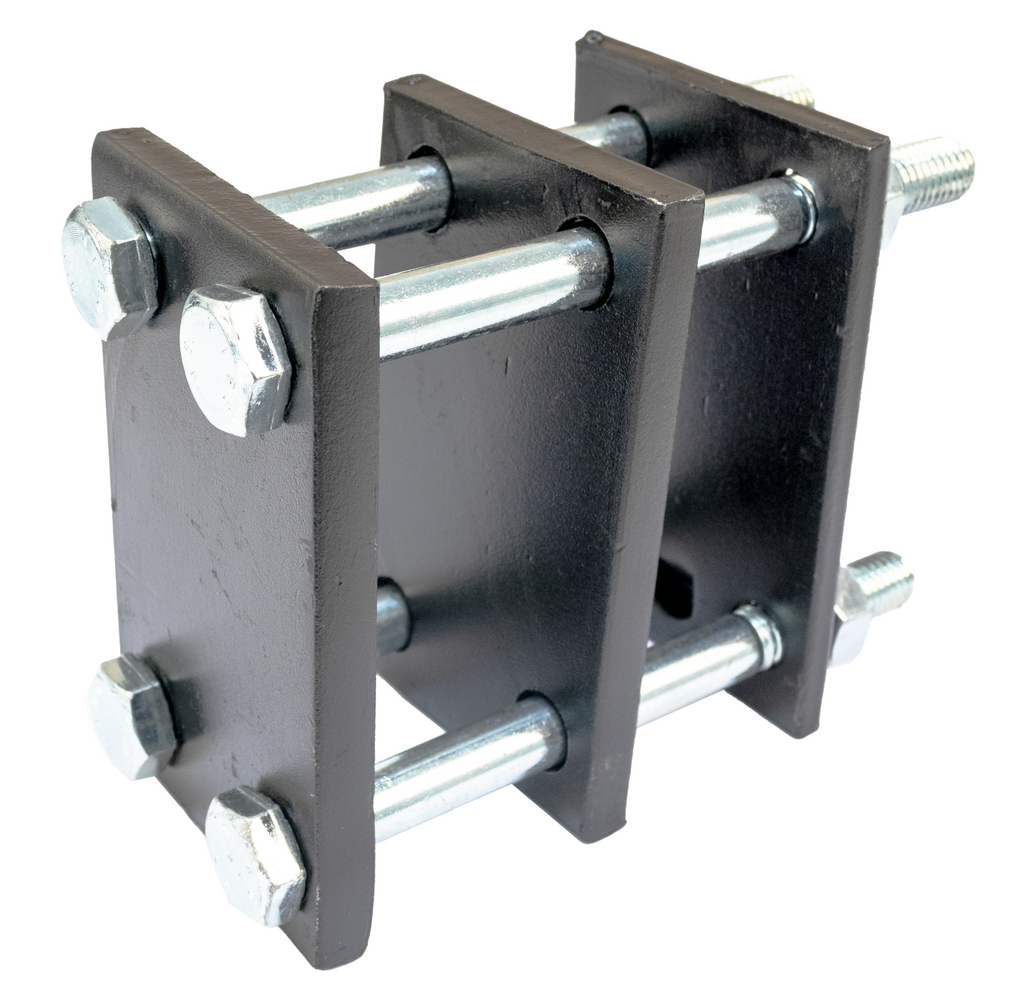Staffa completa per fissaggio molla quadra 30x30 e trave da 80x80 mm.