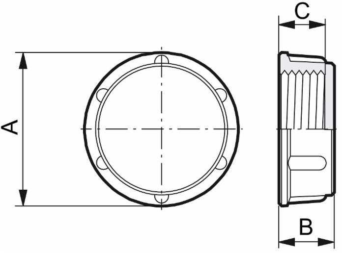 Tappo Arag in polipropilene per irrorazione e diserbo femmina con filettatura G1" e diametro 46 mm.