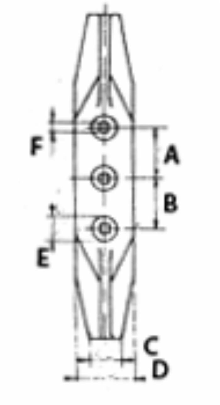 Vomerina stampata doppia punta per ripuntatore. Interasse fori A = 66 mm, B = 66 mm, lunghezza 420 mm