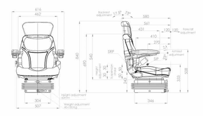 Guida alla scelta: questo sedile è compatibile con numerosi modelli di macchine agricole e industriali. Per verificare la compatibilità è necessario controllare altezza, larghezza e attacchi del sedile originale. In alcuni casi può essere necessario munirsi di una piastra di fissaggio a cui applicare altri fori per adattare il sedile.