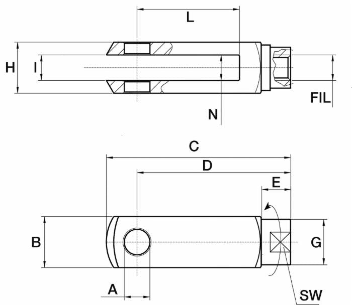 Forcella gambo rotante filetto M10 dx confezione da 3 pezzi