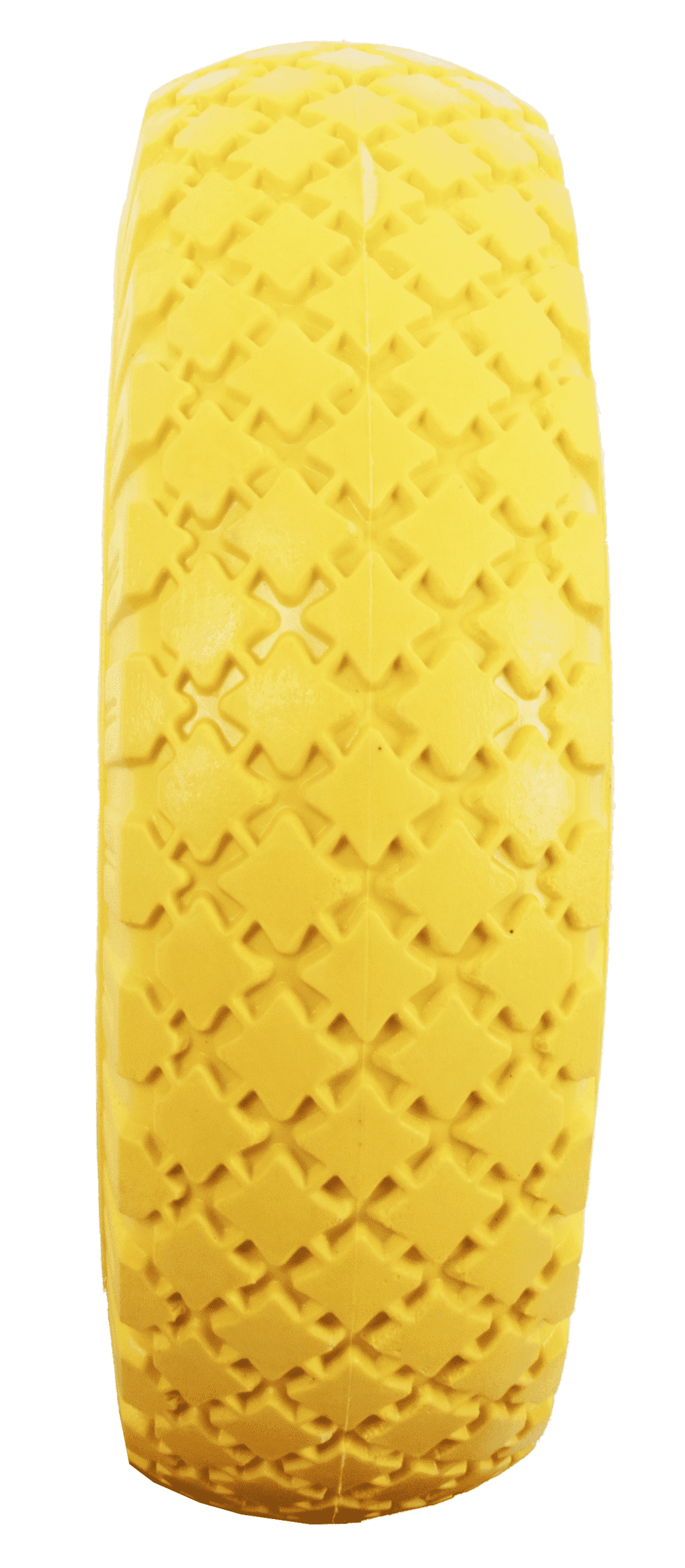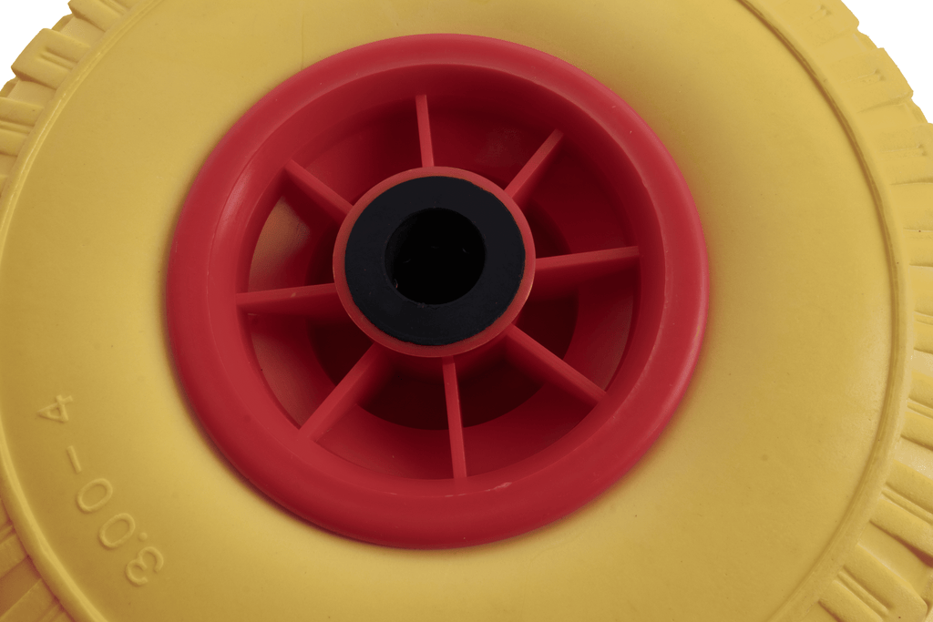 Ruota di colore giallo progettata per l’utilizzo su carrelli.