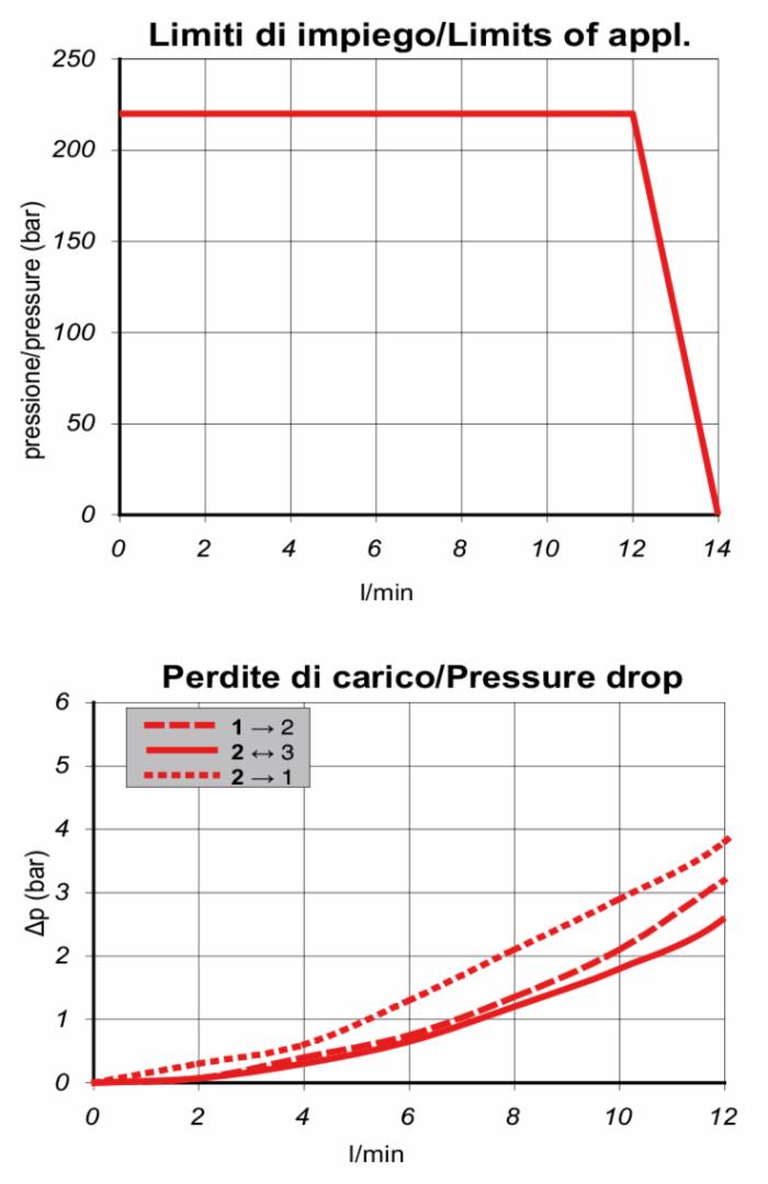 Valvola elettrica a 3 vie 24VDC, portata 12 litri, pressione massima 220 bar. Bobina inclusa, senza connettore.