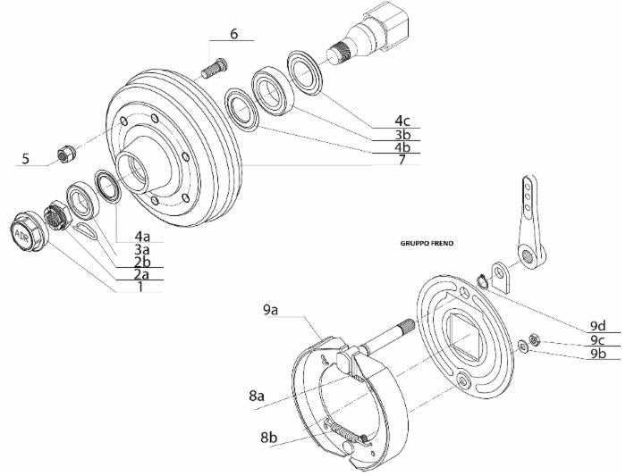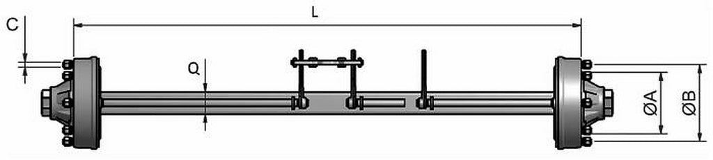 Assale Q70 a 6 fori, con freno diametro 300x60, lunghezza interasse 1600mm. Diametro colonnetta 18. Cuscinetti 30208-30213. Interasse fori+battuta disco 205-160. Velocità massima 40 Km/h, portata max 5000kg a 40km/h.
