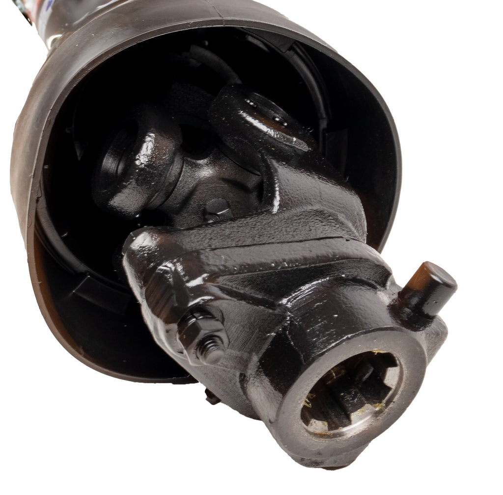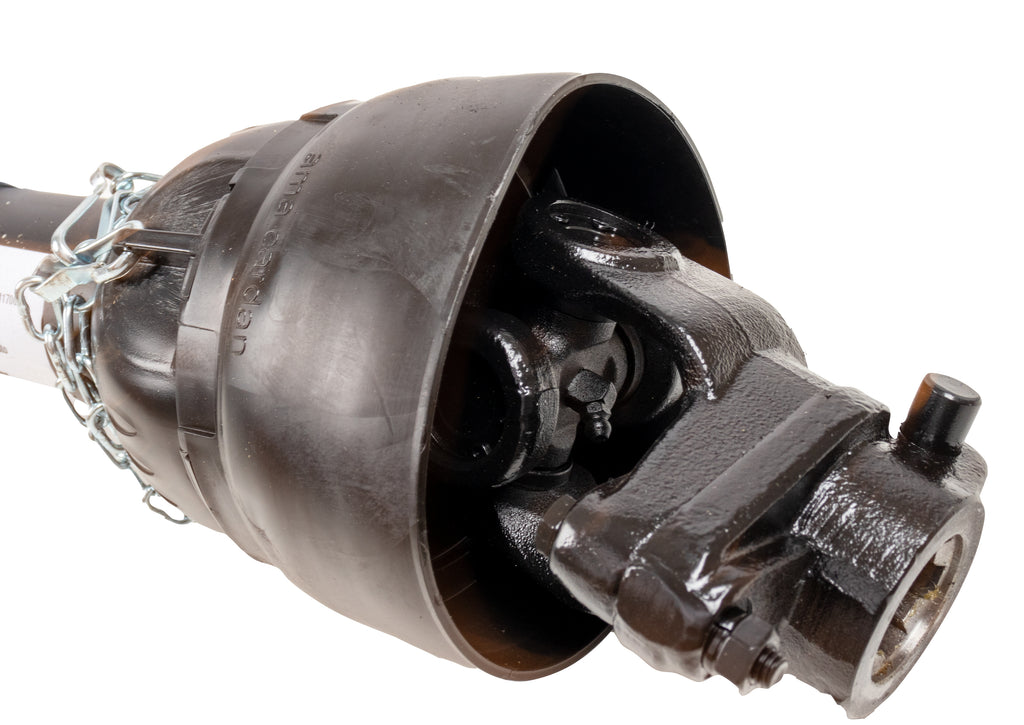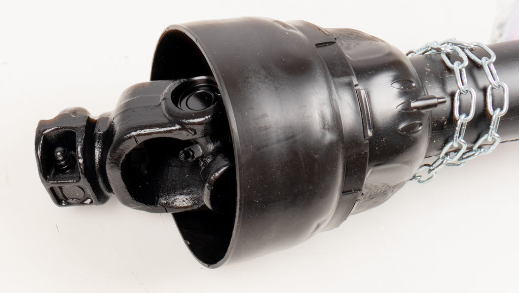 Albero cardanico di categoria 4, lungo 800 mm con dispositivo di sicurezza limitatore a bullone di trancio posto sul lato attrezzo. La limitazione avviene mediante la tranciatura del bullone, evitando così picchi di coppia improvvisi (ingolfamento dell’attrezzo) che possono pregiudicare la resistenza o la durata dei componenti dell’albero cardanico.