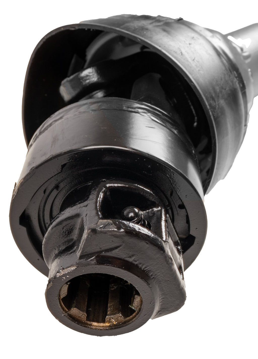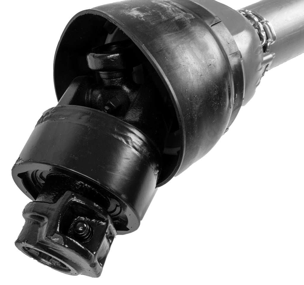 Albero cardanico di categoria 4, lungo 1000 mm con dispositivo di sicurezza ruota libera posto sul giunto cardanico lato attrezzo. Permette la trasmissione di coppia solo in un senso di rotazione evitando ritorni di potenza o picchi di coppia improvvisi (ingolfamento dell’attrezzo) che possono pregiudicare la resistenza e la durata dei componenti.