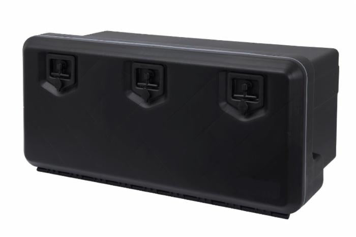 Cassetta porta attrezzi in polipropilene con serratura Europlex a cilindretto, misure 1030x500x455 mm. Tenuta all'acqua e alle polveri; sistema di chiusura a compressione con la guarnizione; coperchio rinforzato; punti di fissaggio continui tra cassa e coperchio; superficie interna liscia.